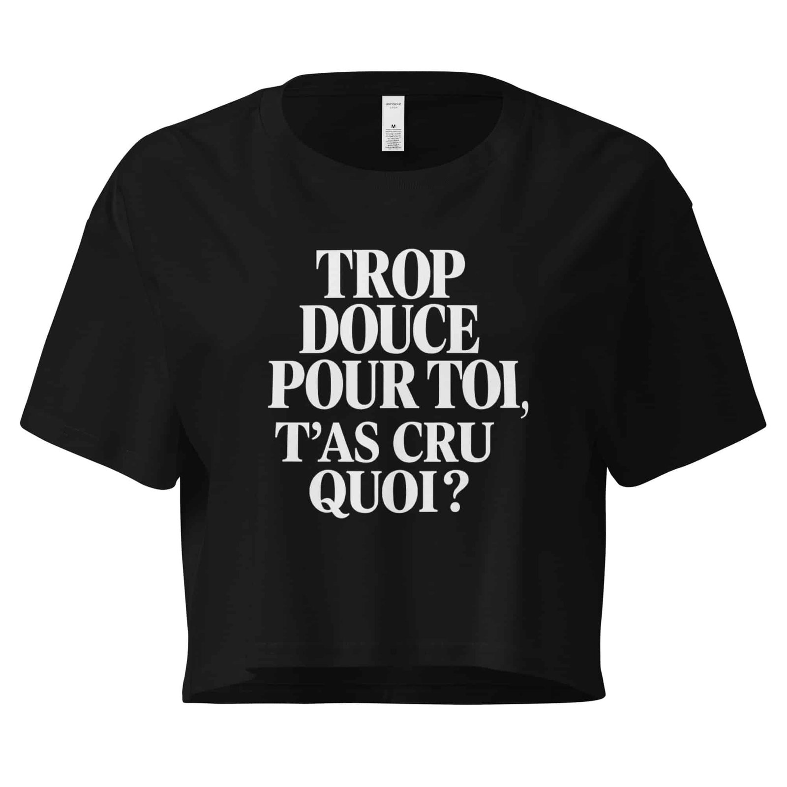 Crop top Aya Trop douce pour toi en coton doux, au design graphique pop urbaine, parfait pour concerts et streetwear tendance.