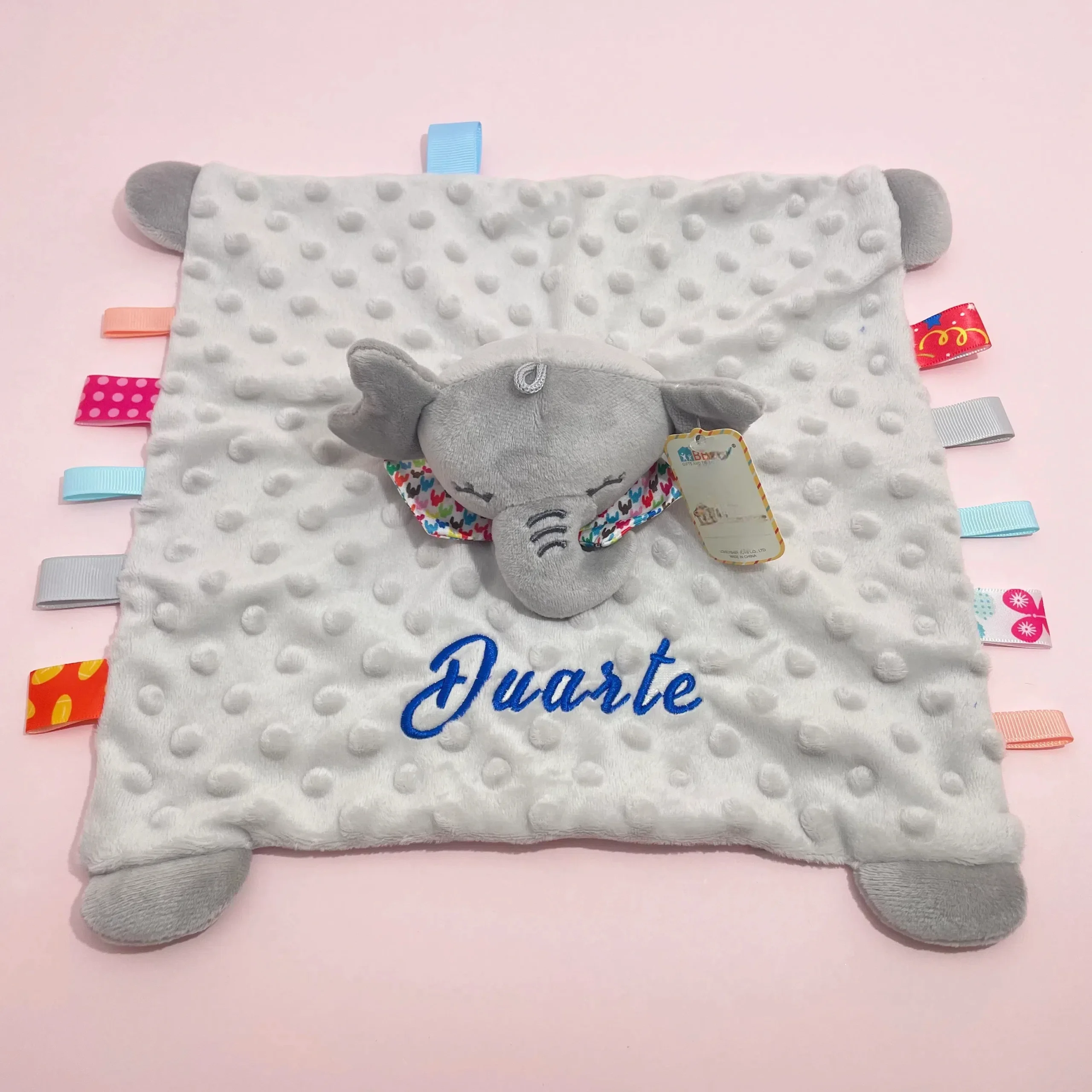 Ce doudou personnalisé éléphant n’est pas seulement mignon, il est aussi pratique et pensé pour les besoins des tout-petits. Sa matière douce respecte la peau délicate des bébés et ses petites étiquettes colorées stimulent l’éveil tactile et visuel.