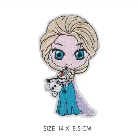 Patch brodé thermocollant Disney Elsa pour personnaliser vêtements et accessoires avec un motif coloré et féérique.