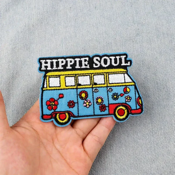 Patch brodé hippie Van thermocollant pour personnaliser vos vêtements et accessoires avec un style rétro et original.