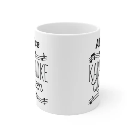 Mug Karaoké Queen personnalisé en céramique brillante, durable et compatible micro-ondes et lave-vaisselle, idéal pour un usage quotidien ou offrir en cadeau unique.