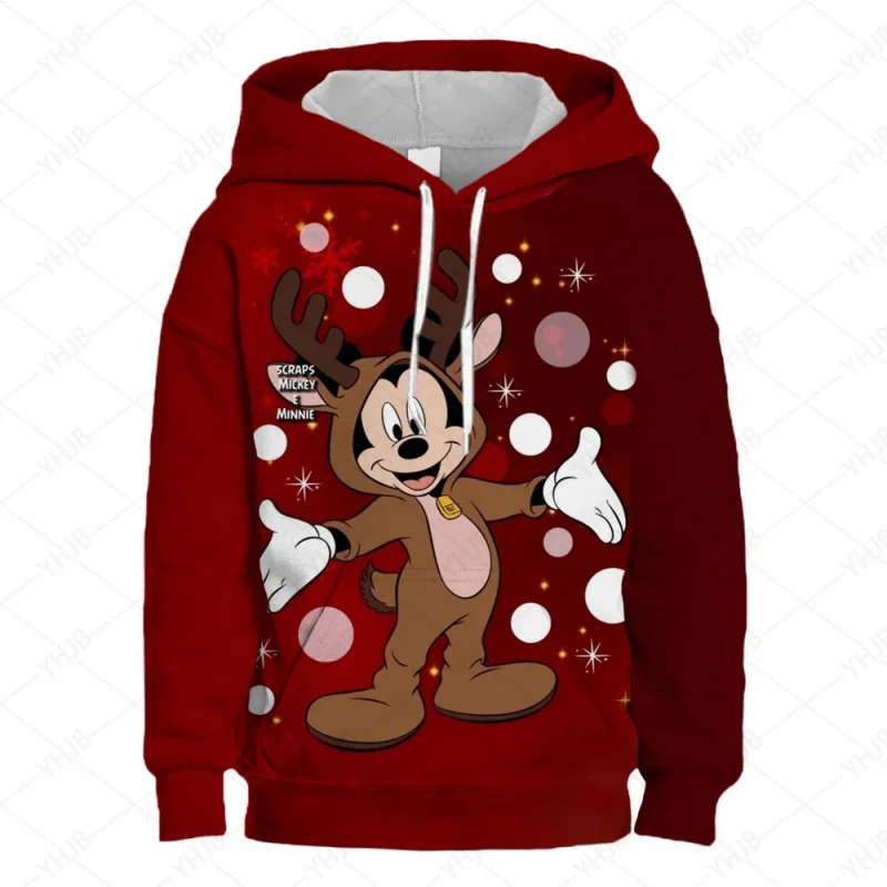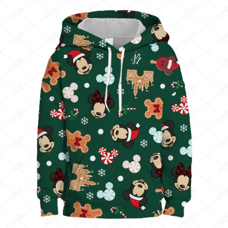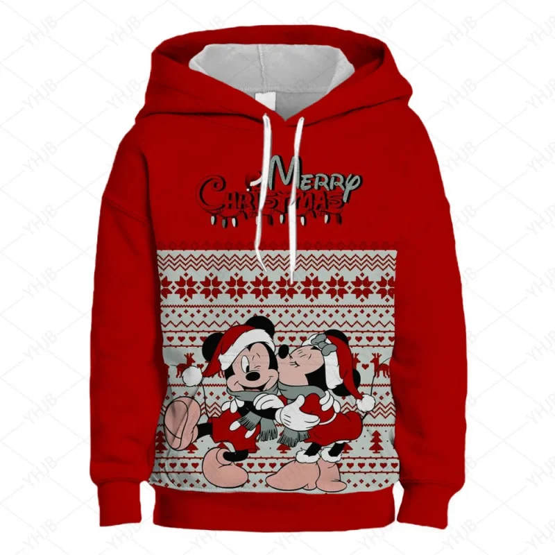 Sweat à capuche Noël Disney Mickey et Minnie, chaud et confortable, idéal pour les fêtes et les cadeaux de Noël.