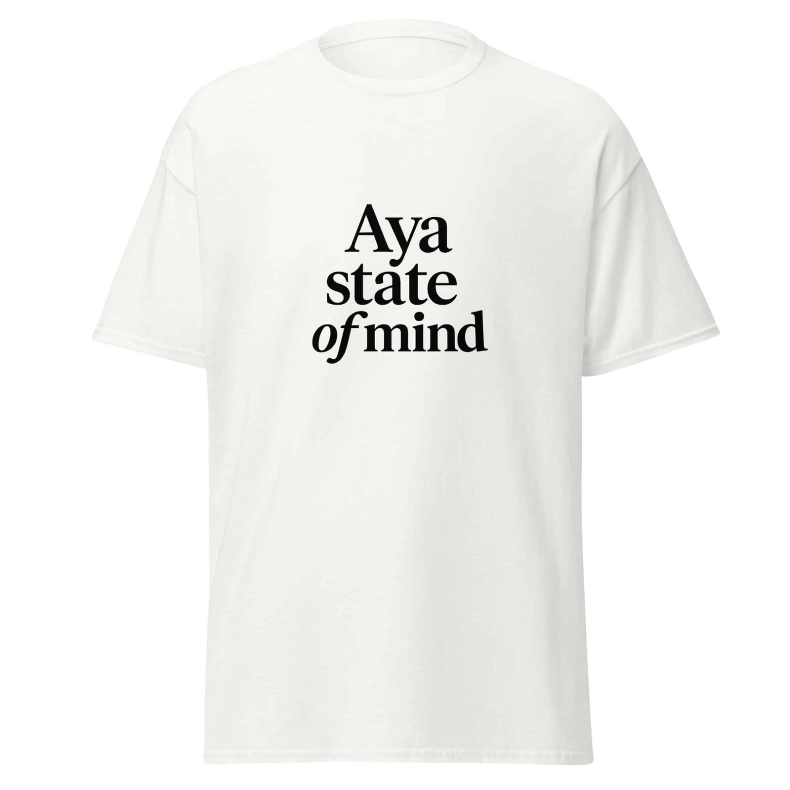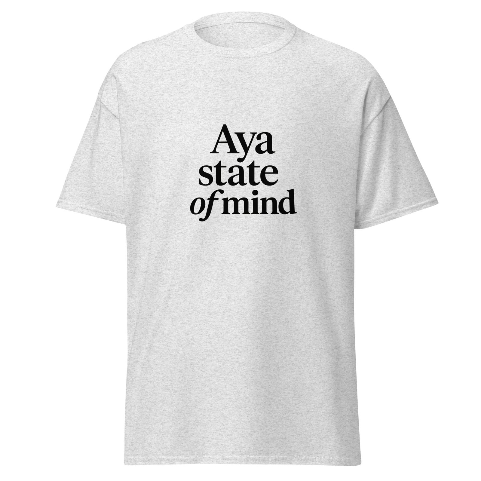 T-shirt Aya State of Mind en coton unisexe, design pop urbaine, idéal pour concerts, festivals et style streetwear quotidien.