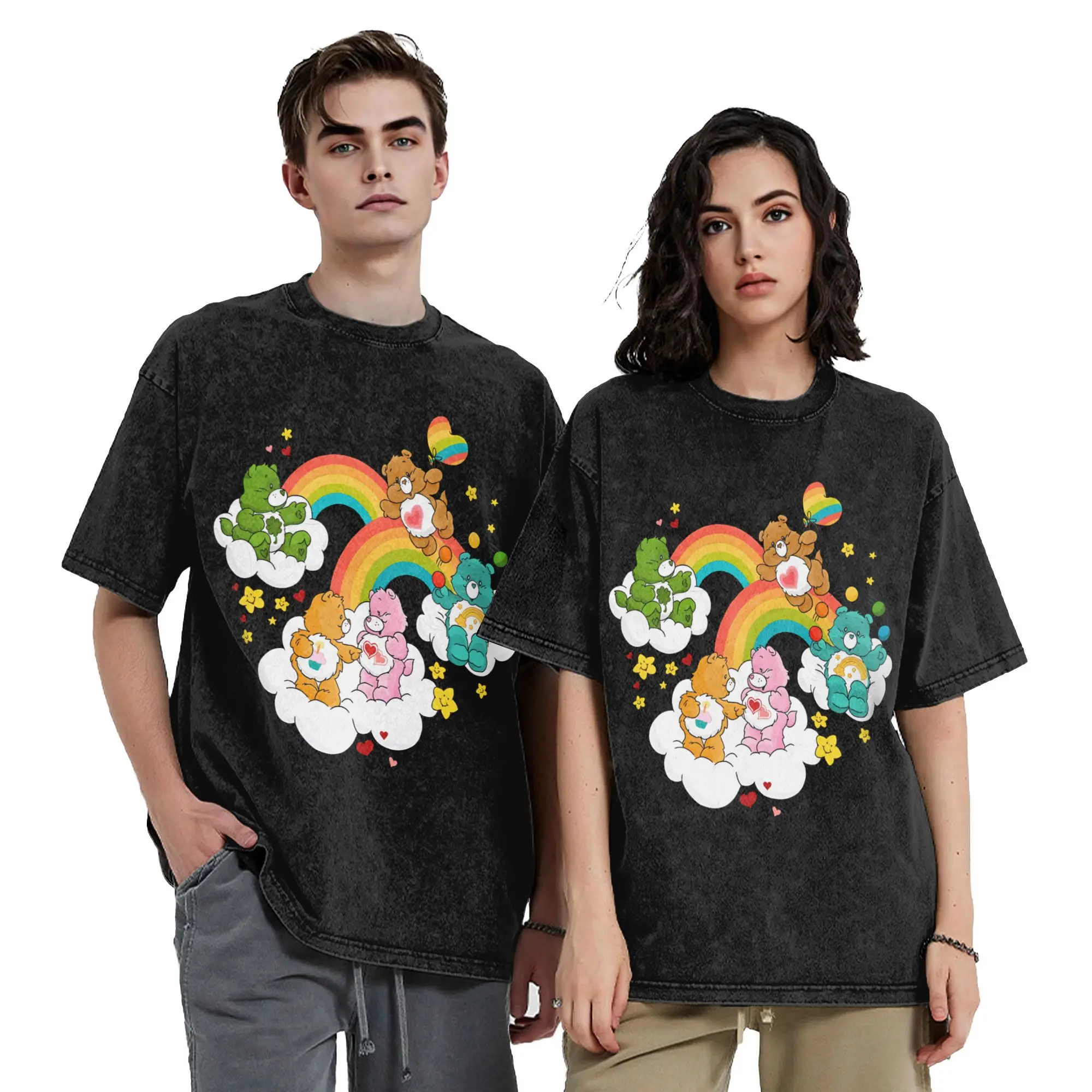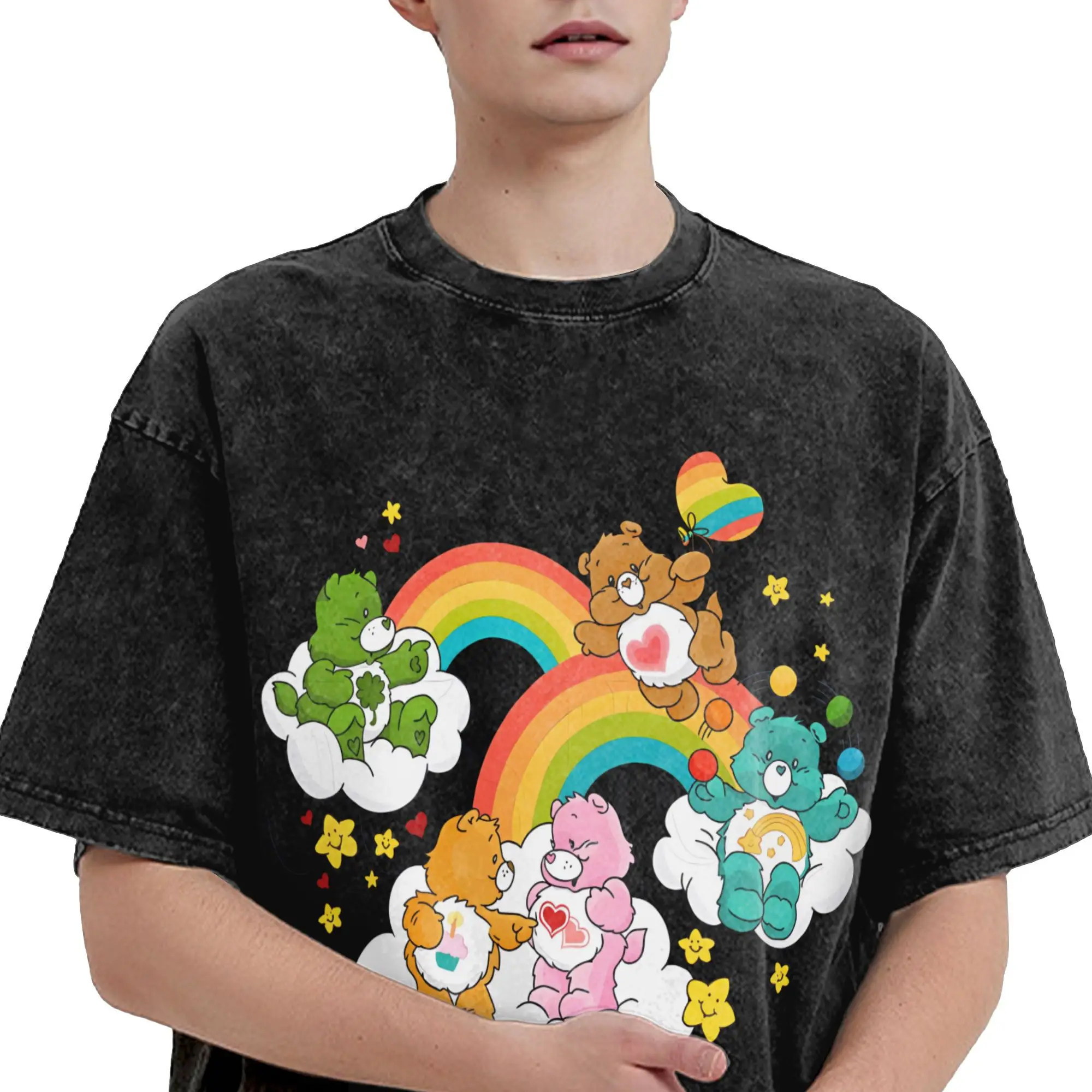 Ce t-shirt Bisounours a clairement ce petit côté régressif qu’on adore. Avec son fond noir effet délavé et son visuel plein de couleurs, il mélange parfaitement l’esprit vintage et l’univers ultra mignon des Bisounours. Les arcs-en-ciel, les nuages, les petits détails colorés et les personnages emblématiques donnent tout de suite une ambiance joyeuse, douce et fun. C’est le genre de t-shirt qui apporte instantanément une touche feel good à une tenue.