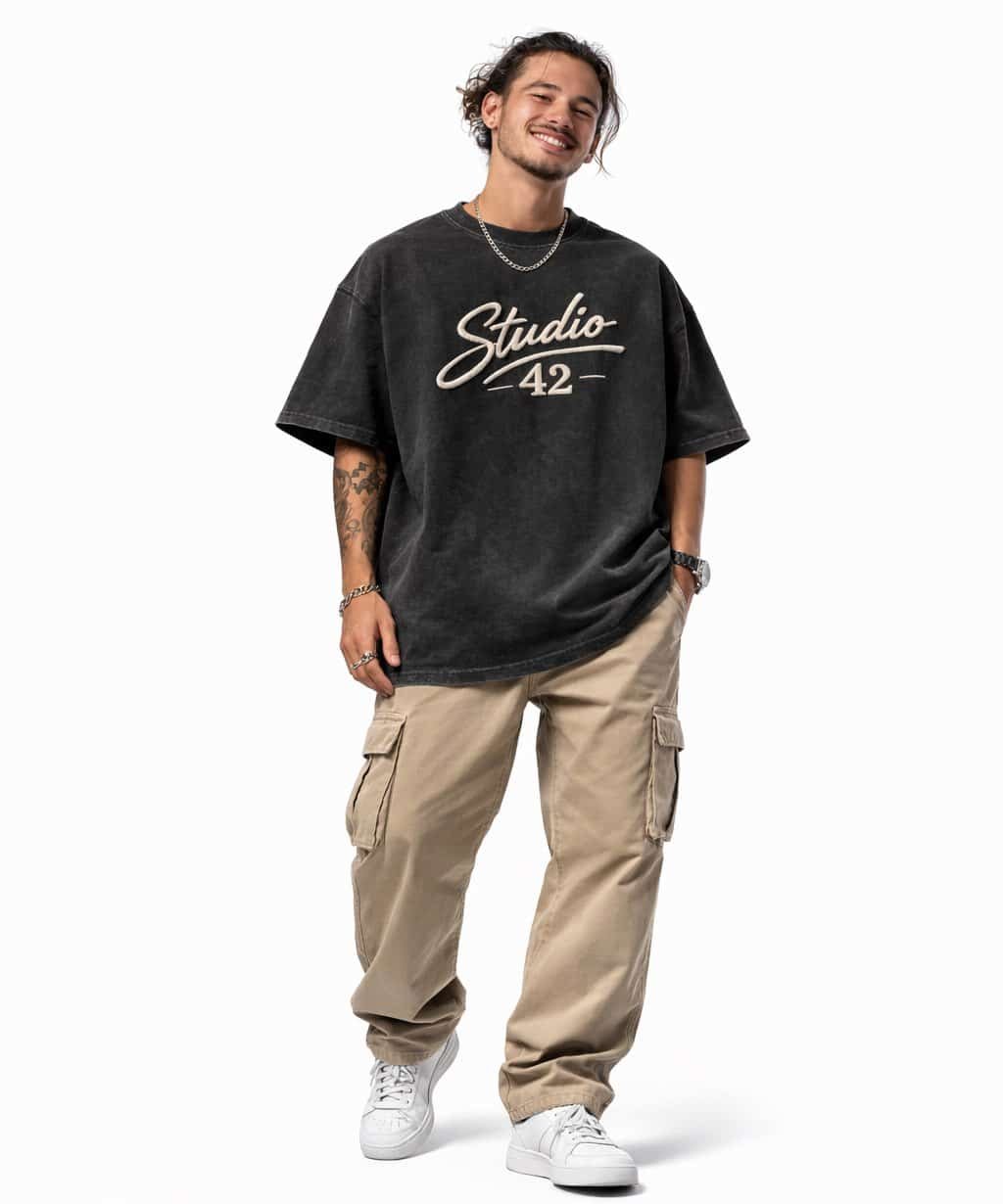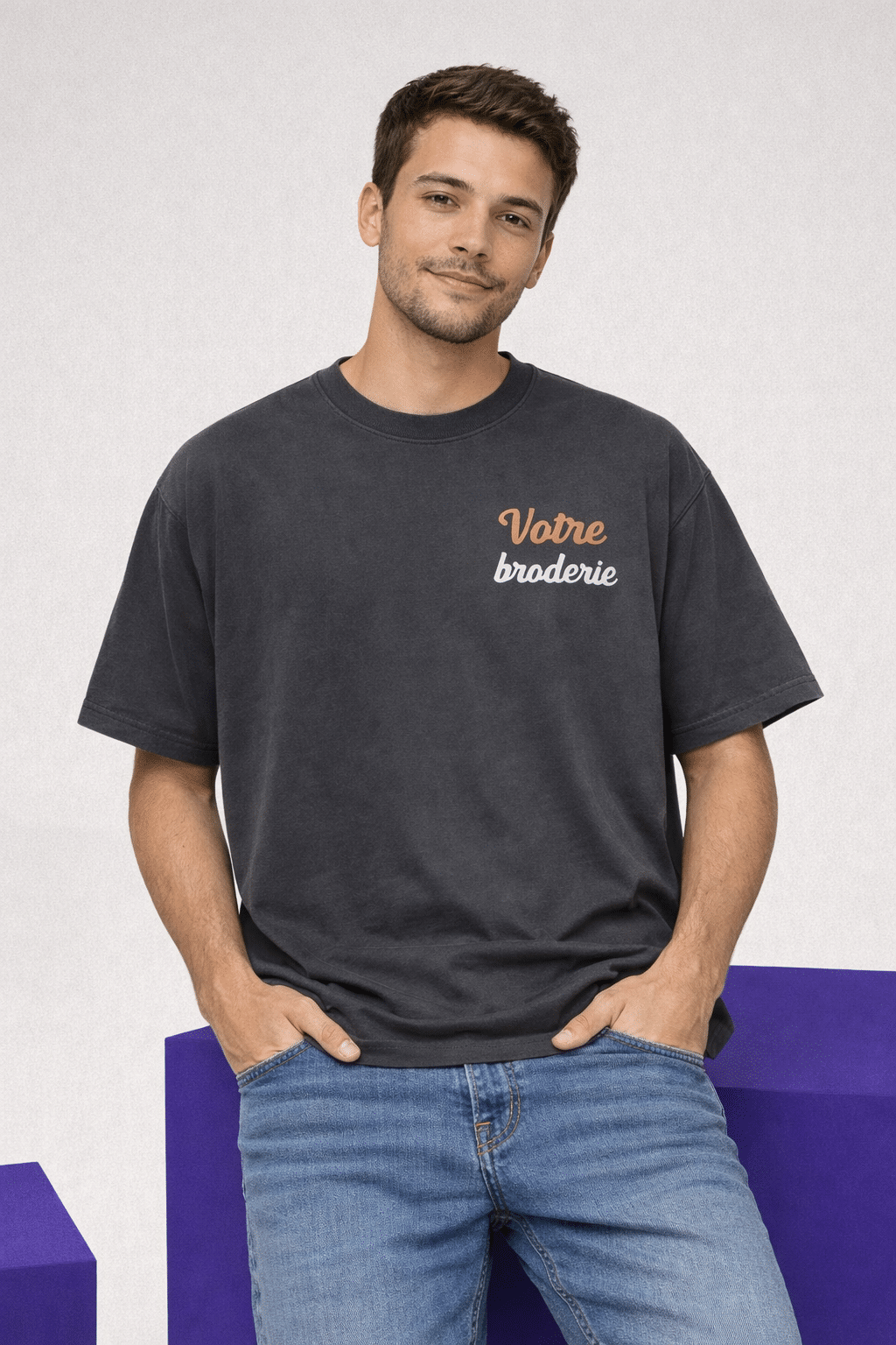 T-shirt oversize personnalisé brodé délavé noir – Confort et style unique
