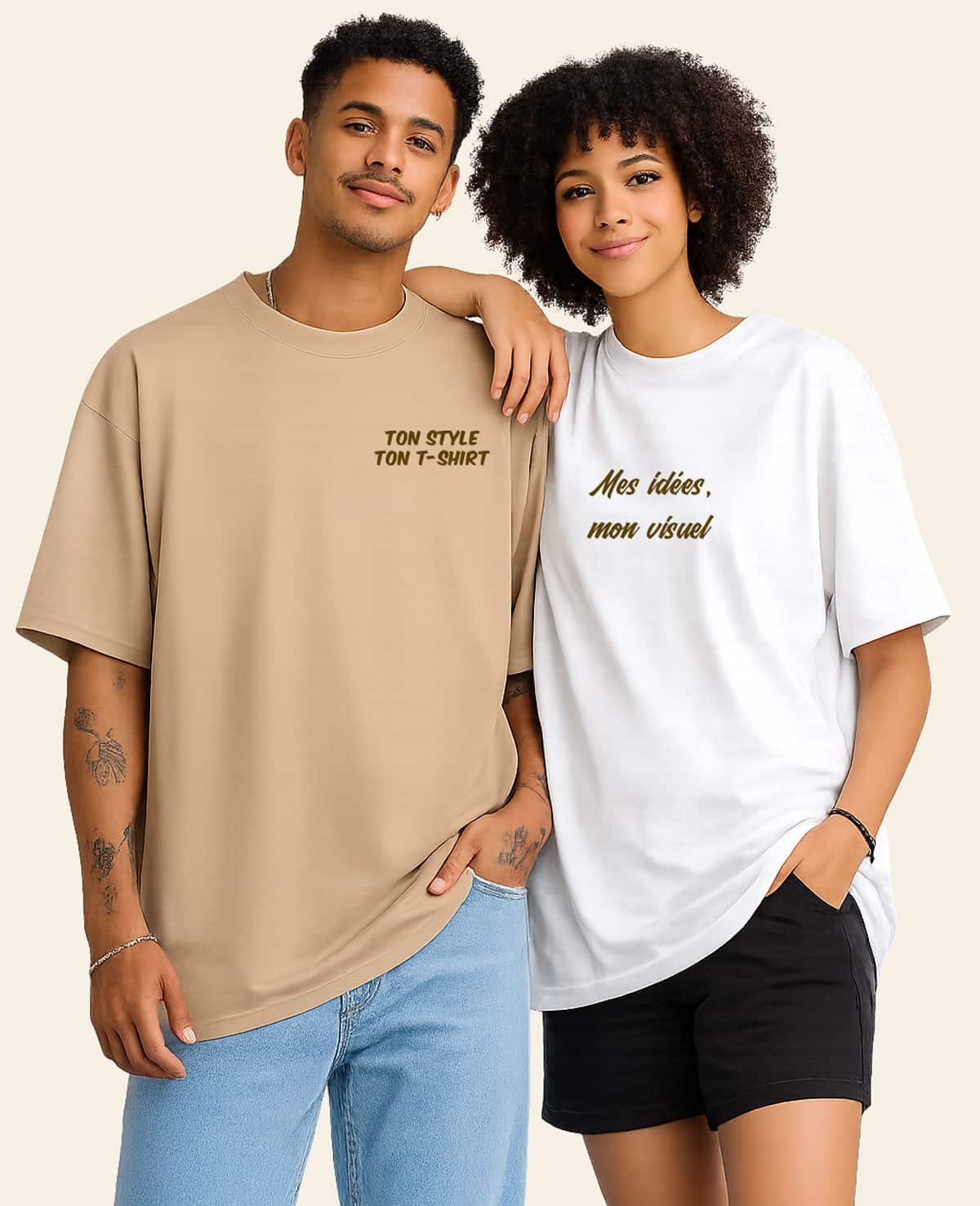 T-shirt oversize personnalisé en coton épais 200g, coupe unisexe moderne. À personnaliser avec un visuel, un logo ou un texte. Expédition rapide en France.