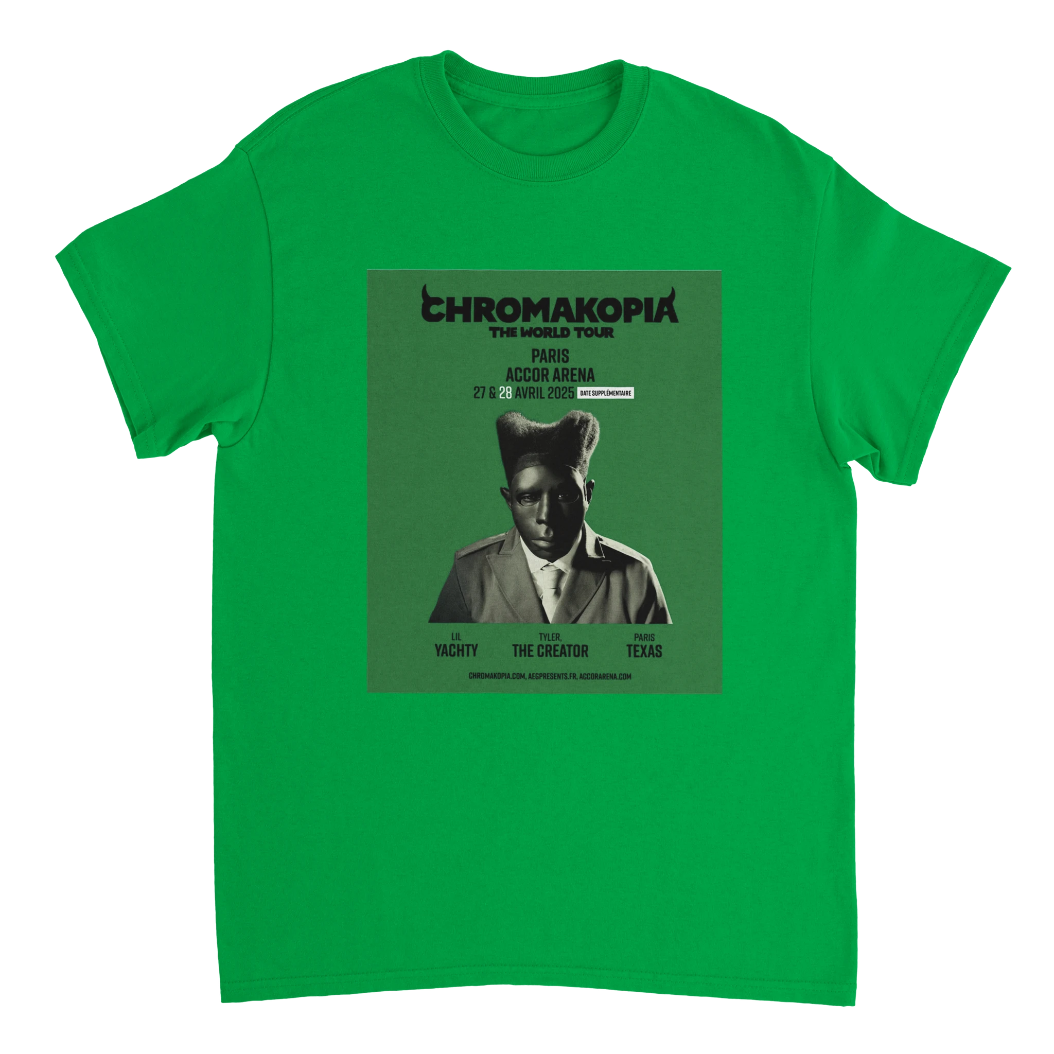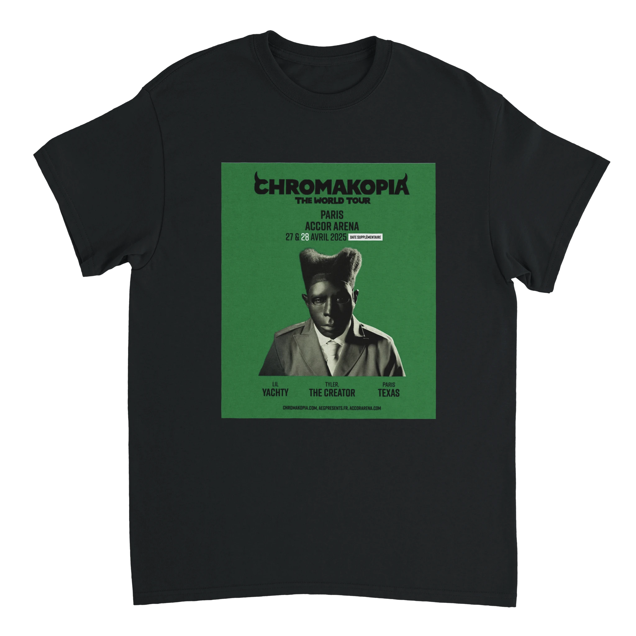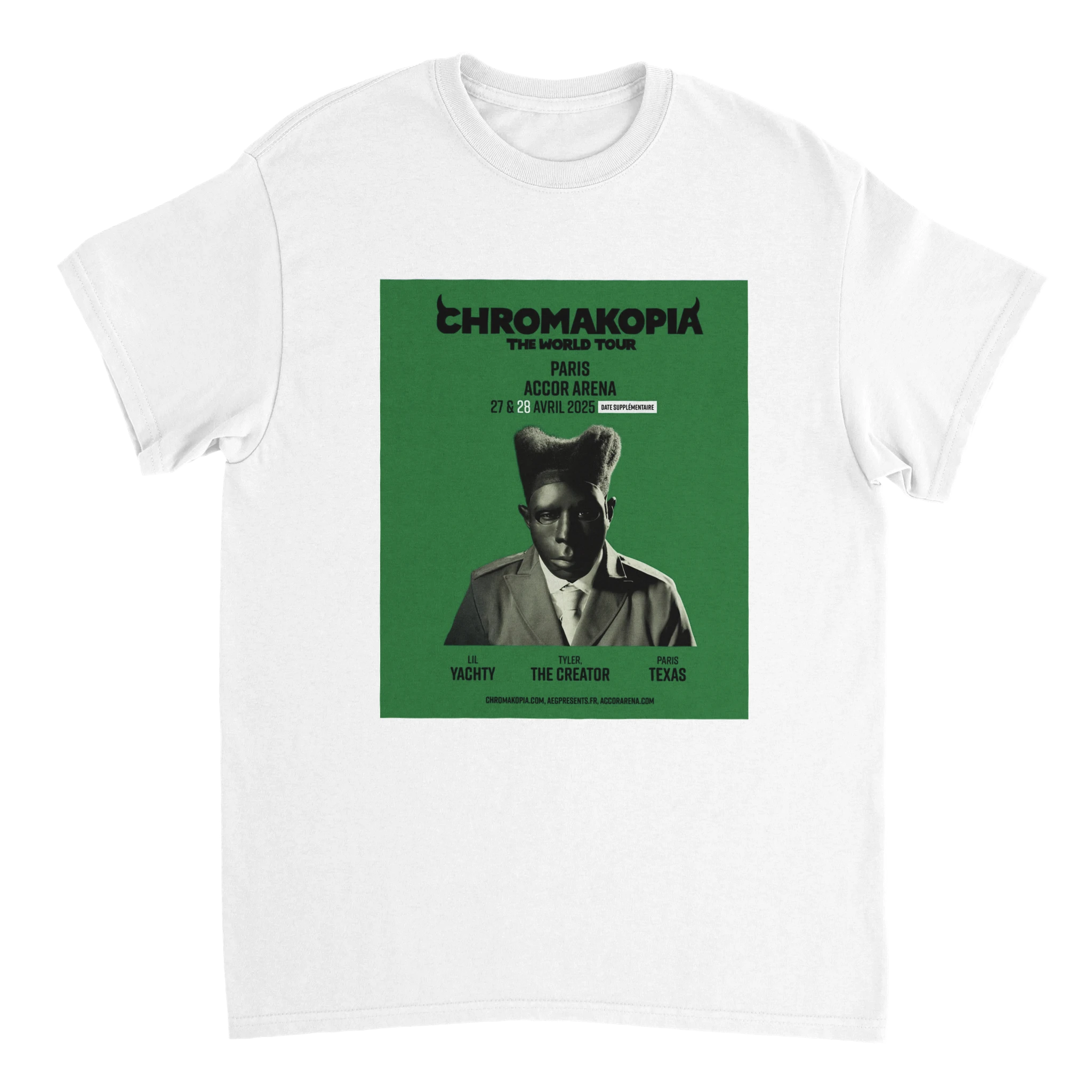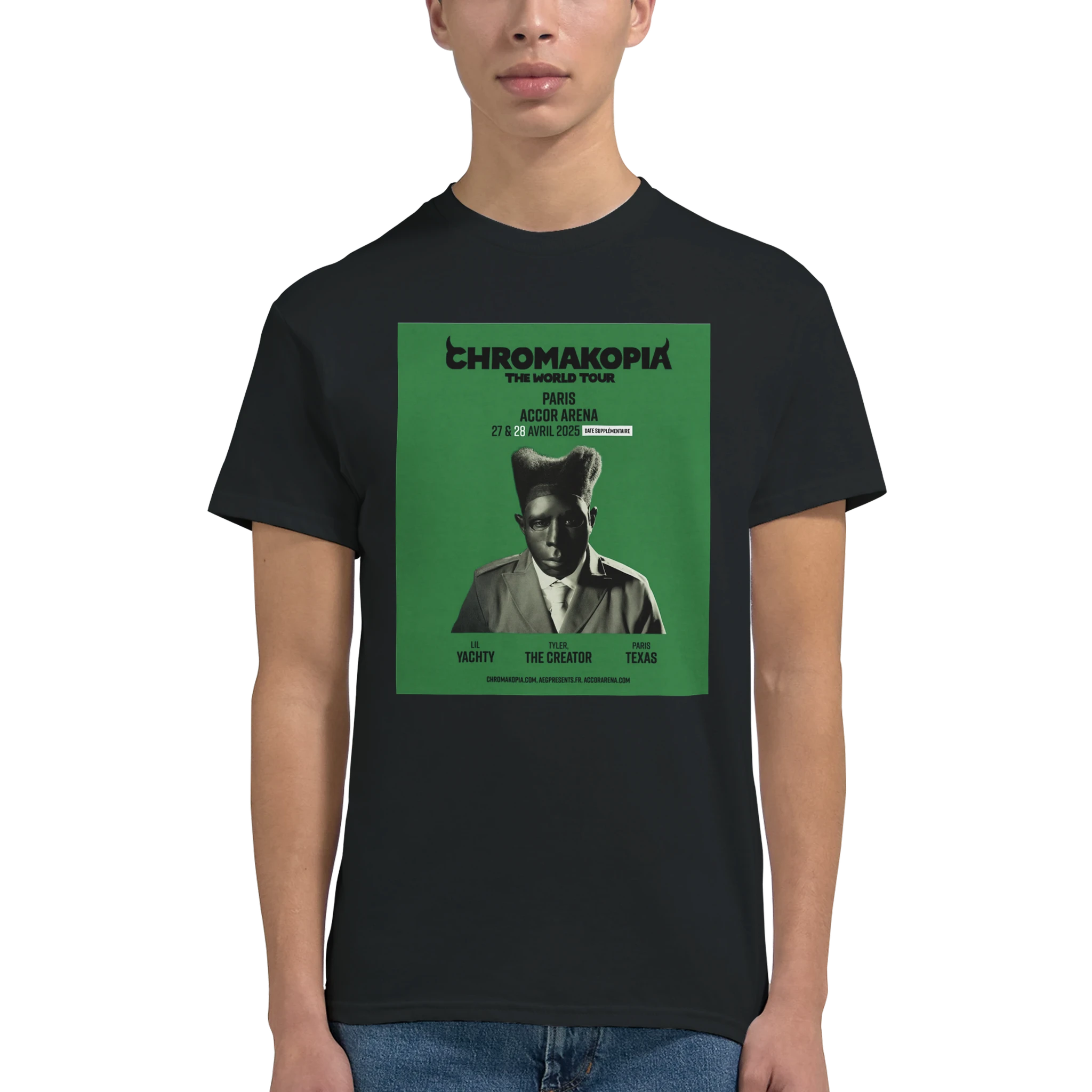 T-shirt Tyler The Creator concert 2026 en coton 100 %, coupe unisexe, inspiré du style hip-hop créatif de l’artiste. Idéal pour concerts et tenues urbaines.